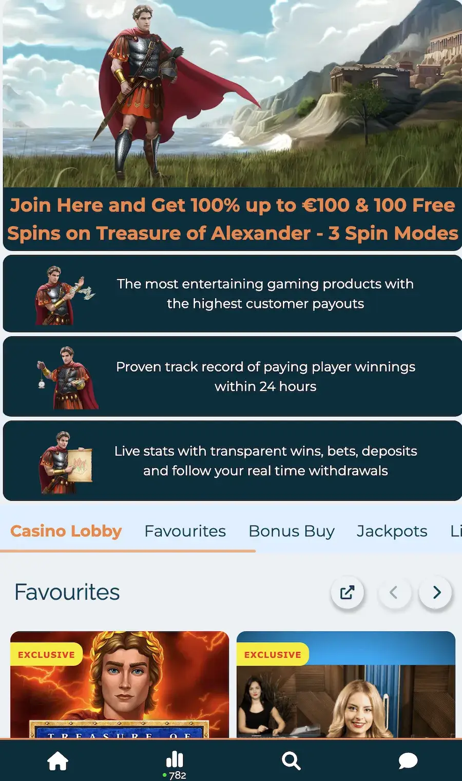 Plongez dans l’aventure Alexander Casino, où le divertissement rencontre la générosité, et découvrez pourquoi nous sommes le choix privilégié des joueurs français. Jouez avec nous et faites partie d’une expérience de jeu extraordinaire.